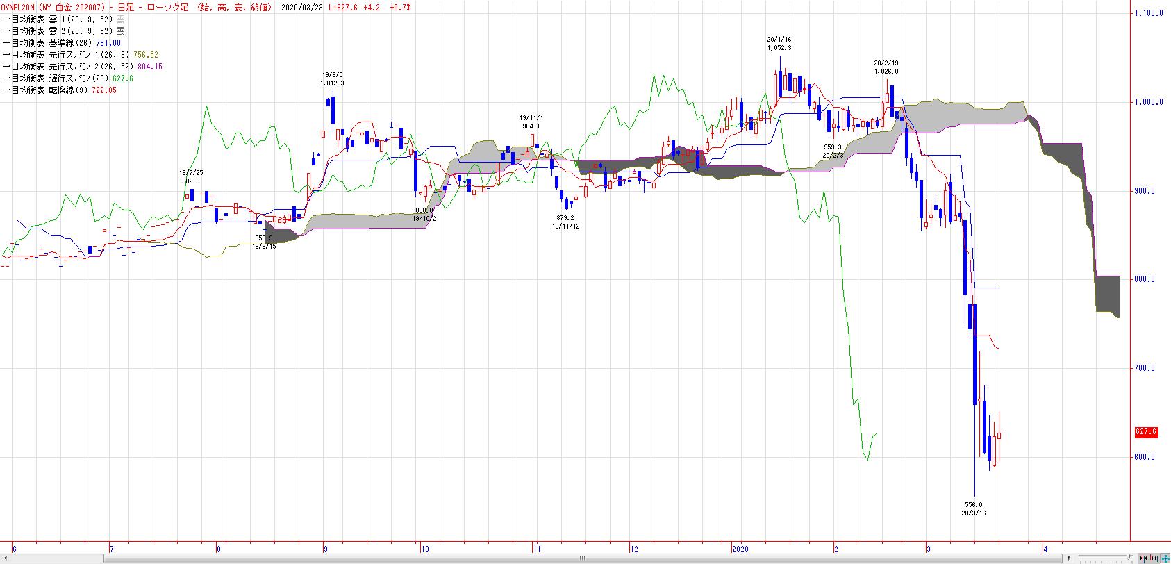 2020/03/24 昨晩のNY白金 昨晩のNY白金(7月限)は続伸。4.2ドル高の627.6ドルで終えた。 トランプ米大統領がニューヨーク州に大規模災害宣言を発令し、株安が圧迫要因となったが、600ドル割れの安値は買い拾われた。米連邦準備理事会(FRB)が無制限の量的緩和(QE)を行うと発表したことや金急伸を受けて堅調となった。 「朝だ夜明けだ」カテゴリの最新記事 < 前の記事次の記事 >