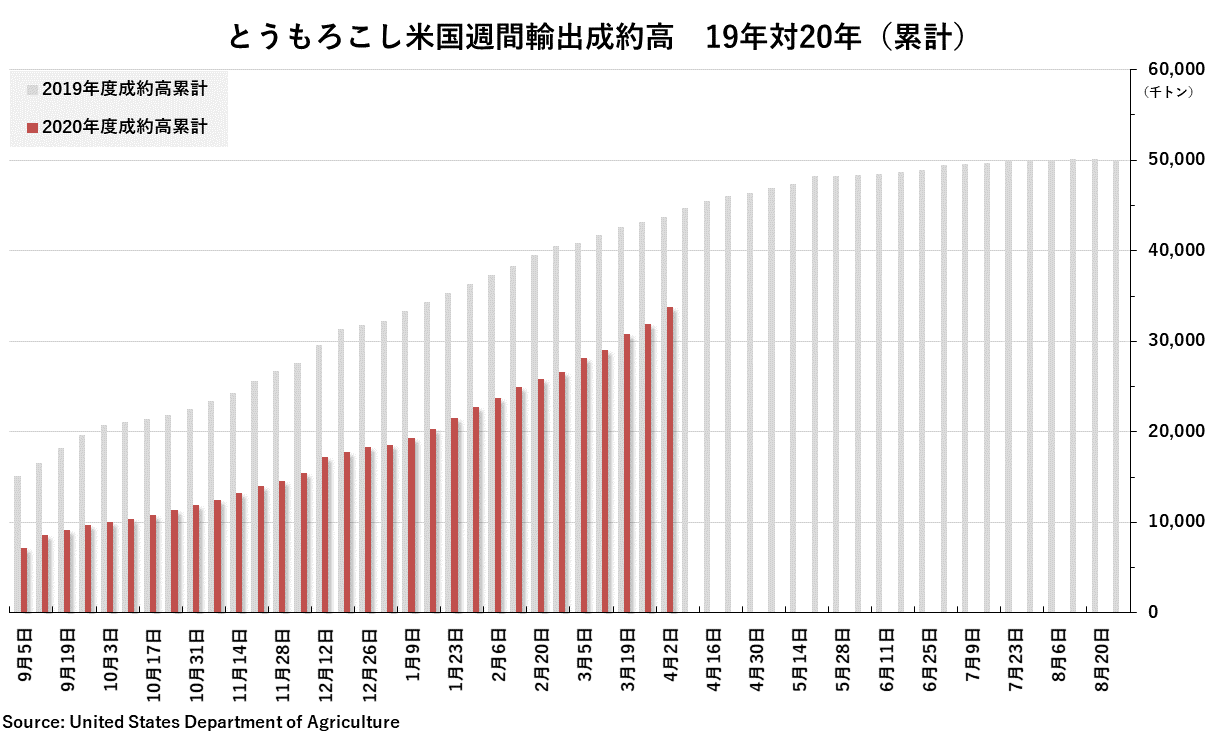 2020/04/14 週間純輸出検証高(4月9日までの週) 大 豆:44万2024トン(前週改定値:30万0915トン) コーン:102万9886トン(前週改定値:127万9364トン) 小 麦: 60万8709トン(前週改定値: 35万0190トン) 「旗は鳴る鳴る ラッパは響く」カテゴリの最新記事 < 前の記事次の記事 >