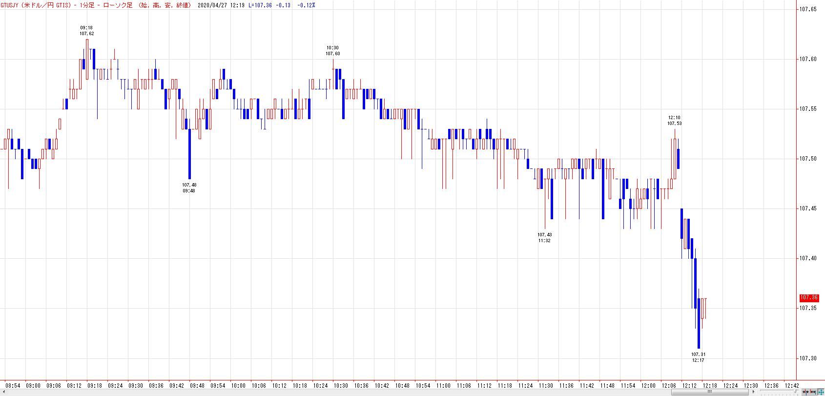 ほぼ事前予想通りの日銀金融政策決定会合を受けて、ドル円は円高ドル安で反応。