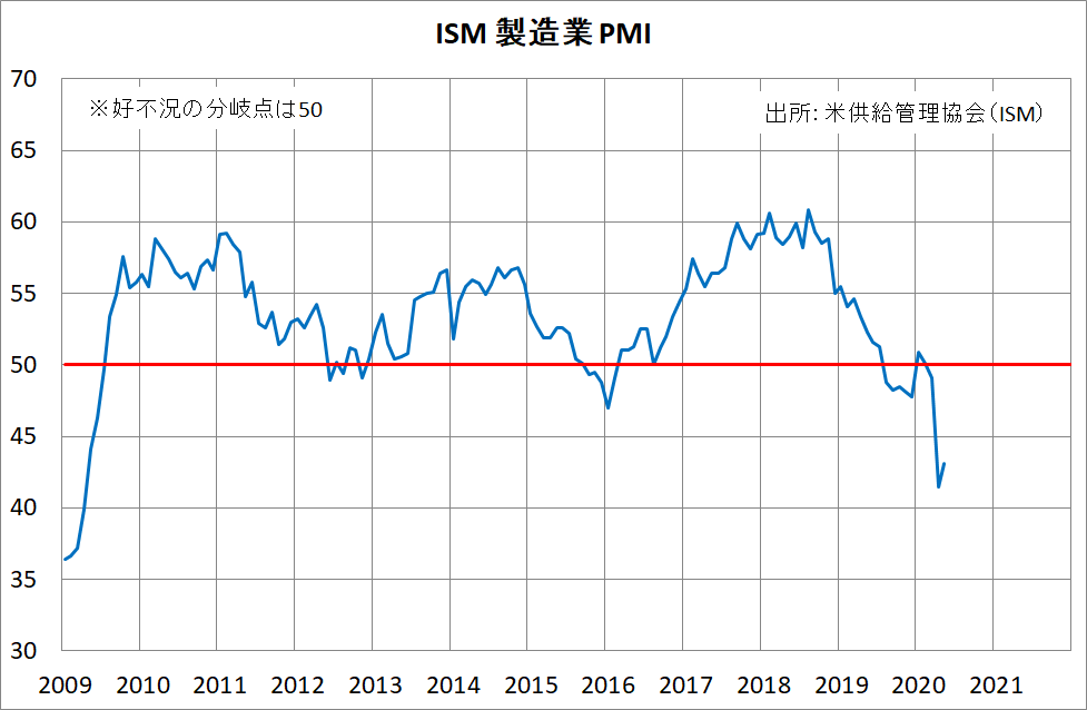2020/06/02 ISM製造業景況指数 米サプライ管理協会(ISM)が1日発表した5月の製造業景況指数は、43.1。市場予想は43.6。 「旗は鳴る鳴る ラッパは響く」カテゴリの最新記事 < 前の記事次の記事 >