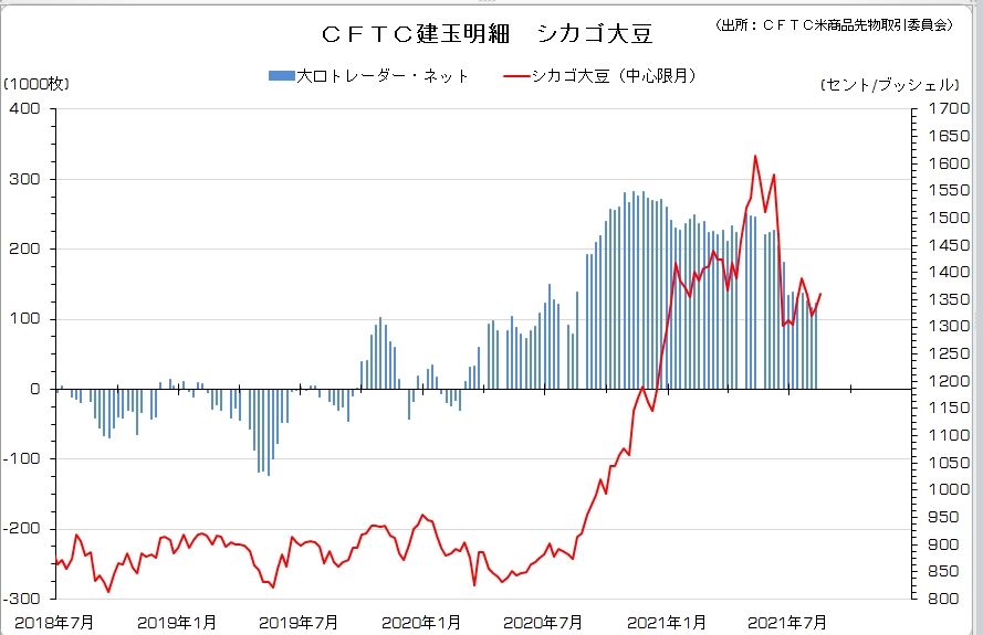 2021/08/23 シカゴ大豆(CFTC建玉明細) CFTC建玉明細(8/17現在)は、116,404枚の買い越し。前週(122,396枚の買い越し)から縮小。 「CFTC建玉明細」カテゴリの最新記事 < 前の記事次の記事 >