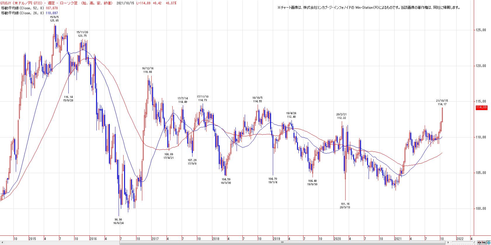 2017年以降、上値抵抗としている115円の攻防が焦点。