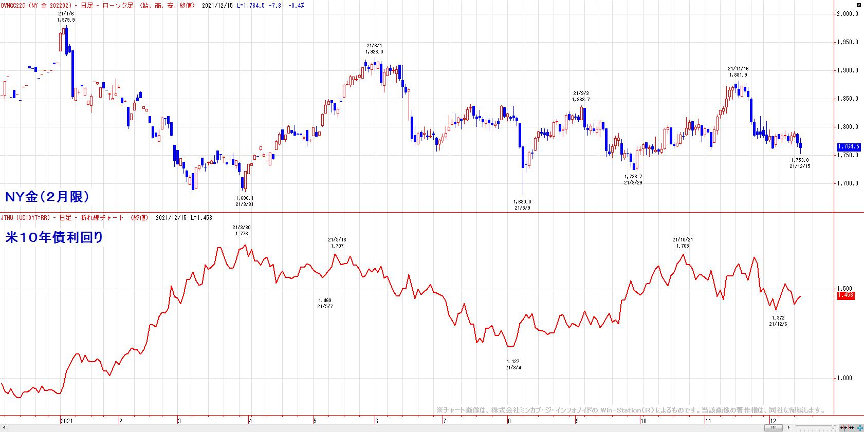 午後、米FOMCで量的緩和の縮小(テーパリング)加速が決定されると、一段安となり、1753.0ドルまで下落したが、金利上昇・ドル高が一服すると、押し目を買われて引けにかけて急伸。