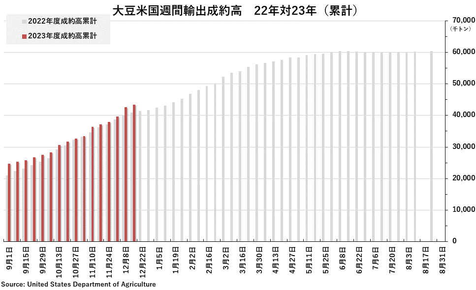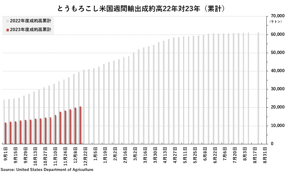 2022/12/23 週間純輸出成約高(12月15日までの週) 大豆:87万6000トン(事前予想レンジ:30万〜80万トン) コーン:63万6800トン(事前予想レンジ:50万〜90万トン) 小麦:33万4200トン(事前予想レンジ:25万〜45万トン) 「旗は鳴る鳴る ラッパは響く」カテゴリの最新記事 < 前の記事次の記事 >