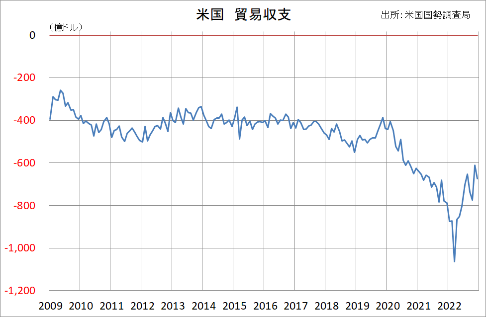 2023/02/08 米貿易赤字 米商務省が7日発表した2022年12月の貿易赤字は前月比10.5%増の674億ドルとなった。輸入が回復した一方、輸出が一段と減少した。 11月の貿易赤字は従来の615億ドルから610億ドルに修正された。22年の貿易赤字は9481億ドルと21年の8450億ドルから拡大した。 輸入は1.3%増の3176億ドル。財(モノ)の輸入が1.8%増の2588億ドルだった。 輸出は0.9%減の2502億ドル。財の輸出が1.7%減の1681億ドルとなった。価格の大幅下落を受けた。 「旗は鳴る鳴る ラッパは響く」カテゴリの最新記事 < 前の記事次の記事 >