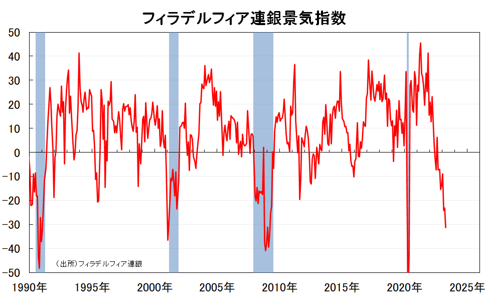 米フィラデルフィア地区連銀が20日発表した4月の製造業業況指数はマイナス31.3と、前月のマイナス23.2から低下し、約3年ぶりの低水準を付けた。予想はマイナス19.2だった。