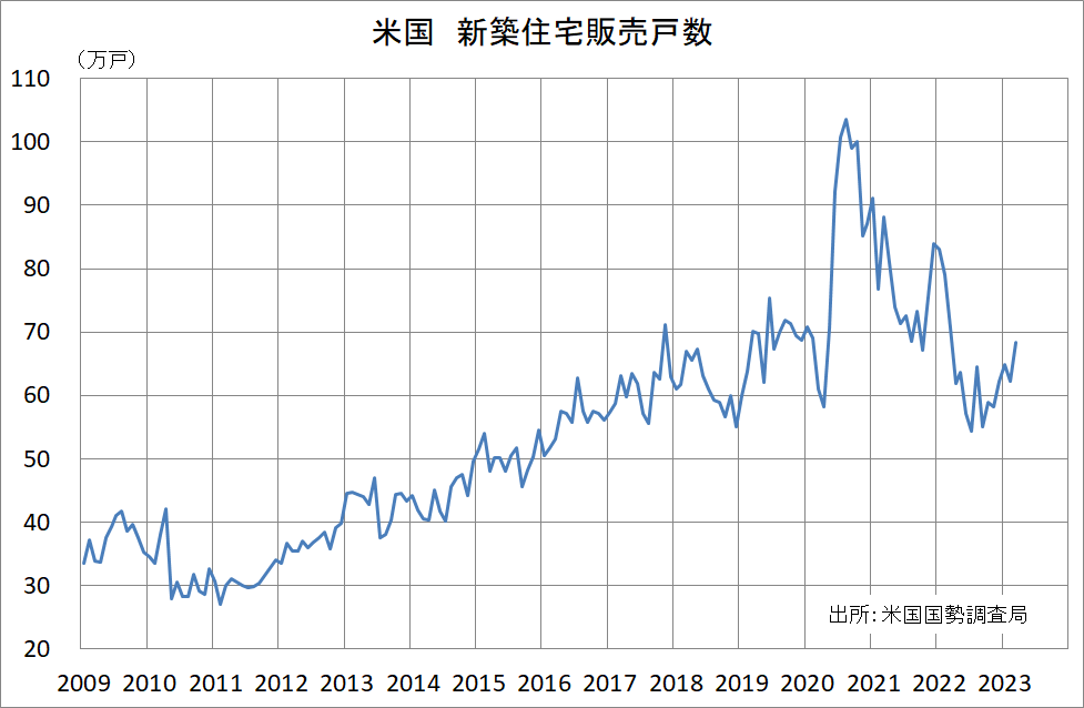 2023/04/26 新築一戸建て住宅販売戸数 米商務省が25日発表した3月の新築一戸建て住宅販売戸数(季節調整済み)は年率換算で前月比9.6%増の68万3000戸と、2022年3月以来1年ぶりの高水準となった。 市場予想は63万戸。 「旗は鳴る鳴る ラッパは響く」カテゴリの最新記事 < 前の記事次の記事 >