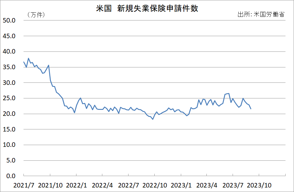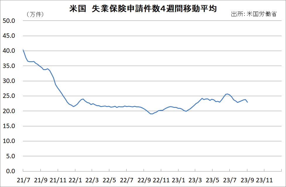 2023/09/08 新規失業保険申請者件数 米労働省が7日発表した9月2日までの1週間の新規失業保険申請件数(季節調整済み)は21万6000件と、前週(改定値)から1万3000件減少した。市場予想は23万4000件。 8月26日までの1週間の継続受給件数は前週(改定値)から4万件減の167万9000件。 「旗は鳴る鳴る ラッパは響く」カテゴリの最新記事 < 前の記事次の記事 >