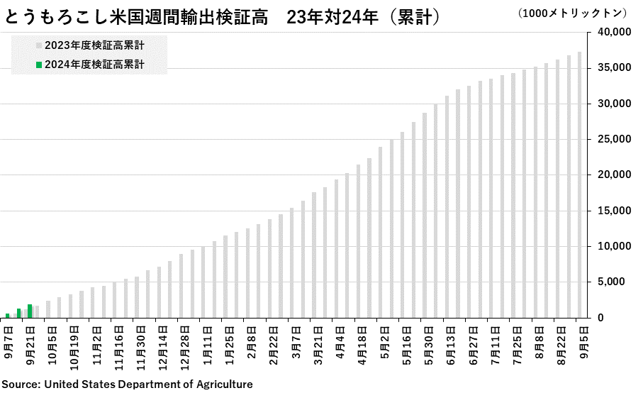 2023/09/26 週間純輸出検証高(9月21日までの週) 大豆:48万1638トン (前週改定値:42万9772トン) コーン:66万0811トン (前週改定値:67万6323トン) 小麦:45万1004トン (前週改定値:42万2639トン) 「旗は鳴る鳴る ラッパは響く」カテゴリの最新記事 < 前の記事次の記事 >