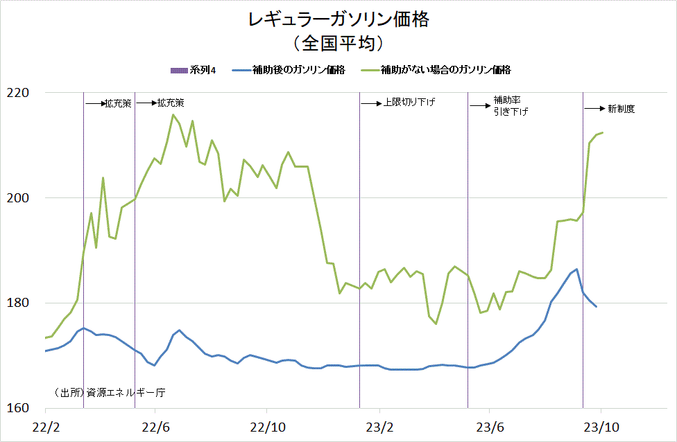2023/10/04 石油製品価格調査 資源エネルギー庁が4日発表した石油製品価格調査によると、2日現在のレギュラーガソリン1リットル当たりの小売価格(全国平均)は、前週比1.2円安の179.3円。4週連続の値下がり。 灯油の全国小売価格は2日現在1リットル当たり、前週比0.7円安の120.8円。4週連続の値下がり。 「旗は鳴る鳴る ラッパは響く」カテゴリの最新記事 < 前の記事次の記事 >