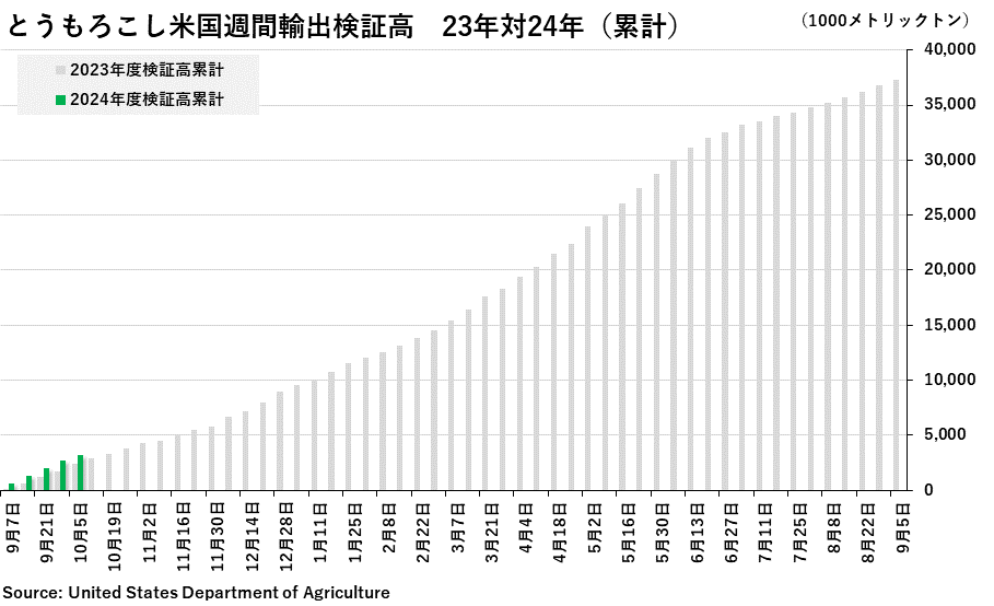 2023/10/11 週間純輸出検証高(10月5日までの週) 大豆:103万6223トン (前週改定値:67万6659トン) コーン:55万0585トン (前週改定値:67万0124トン) 小麦:26万5242トン (前週改定値:42万8774トン) 「旗は鳴る鳴る ラッパは響く」カテゴリの最新記事 < 前の記事次の記事 >