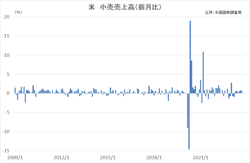 2023/10/18 9月の米小売売上高 米商務省が17日発表した9月の小売売上高(季節調整済み)は前月比0.7%増えた。増加率は市場予想の0.3%を上回った。自動車購入やレストラン・バーでの消費が増えたことが押し上げ要因となった。8月分は当初発表の0.6%増から0.8%増へ上方改定された。 「旗は鳴る鳴る ラッパは響く」カテゴリの最新記事 < 前の記事次の記事 >