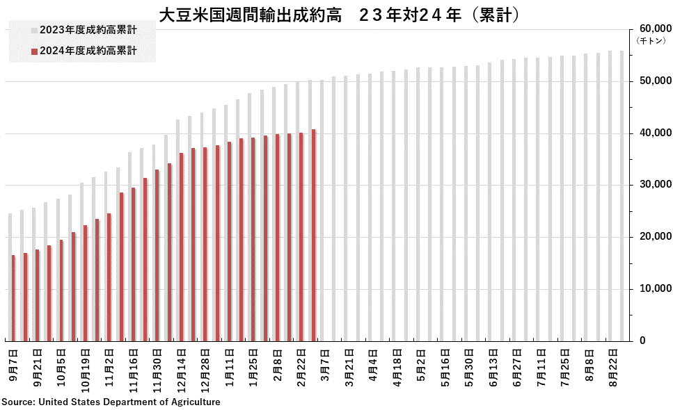 2024/03/08 週間純輸出成約高(2月29日までの週) 大豆:67万9500トン (事前予想レンジ:40万〜90万トン) 大豆粕:22万2400トン (事前予想レンジ:10万〜40万トン) 大豆油:2万9200トン (事前予想レンジ:5000〜8000トン) コーン:110万9600トン (事前予想レンジ:50万〜120万トン) 小麦:33万5100トン (事前予想レンジ:15万〜 50万トン) 「旗は鳴る鳴る ラッパは響く」カテゴリの最新記事 < 前の記事次の記事 >