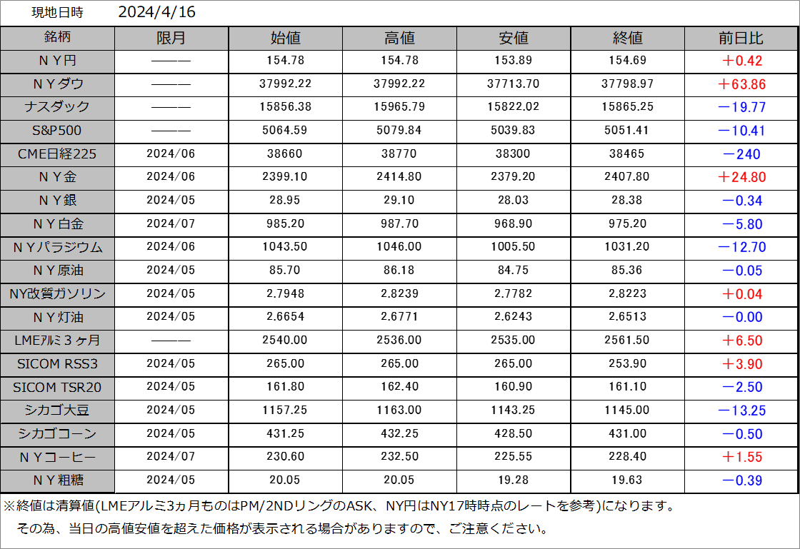 2024/04/17 寄付き予想 本日の国内市場は、 金属市場は、金が+14円前後、 白金が、-27円前後、 原油市場が、-200円前後、 ゴムRSS3号が、-2.8円前後、 穀物市場は、コーンが+20円前後で始まる見通し。 日経225は、反発して始まる見通し。 シカゴ日経平均先物(6月限) ドル建て: 38495( +105)大阪終値比 円建て : 38465( +75)大阪終値比 「朝だ夜明けだ」カテゴリの最新記事 < 前の記事次の記事 >