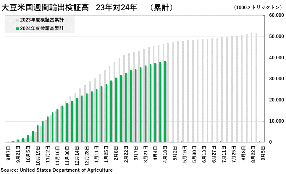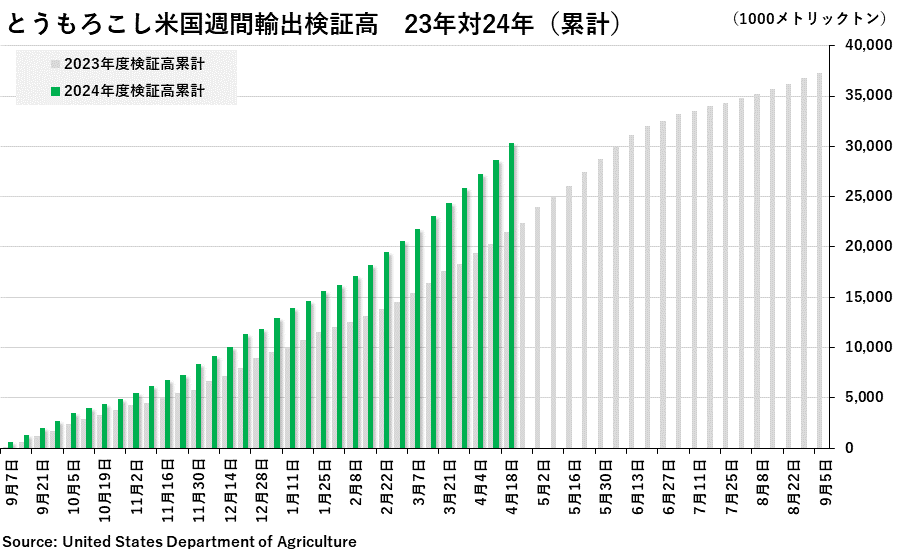 2024/04/23 週間純輸出検証高(4月18日までの週) 大豆:43万5256トン(前週改定値:44万6570トン) コーン:162万3532トン(前週改定値:135万3515トン) 小麦:45万0275トン(前週改定値: 62万0139トン) 「旗は鳴る鳴る ラッパは響く」カテゴリの最新記事 < 前の記事次の記事 >