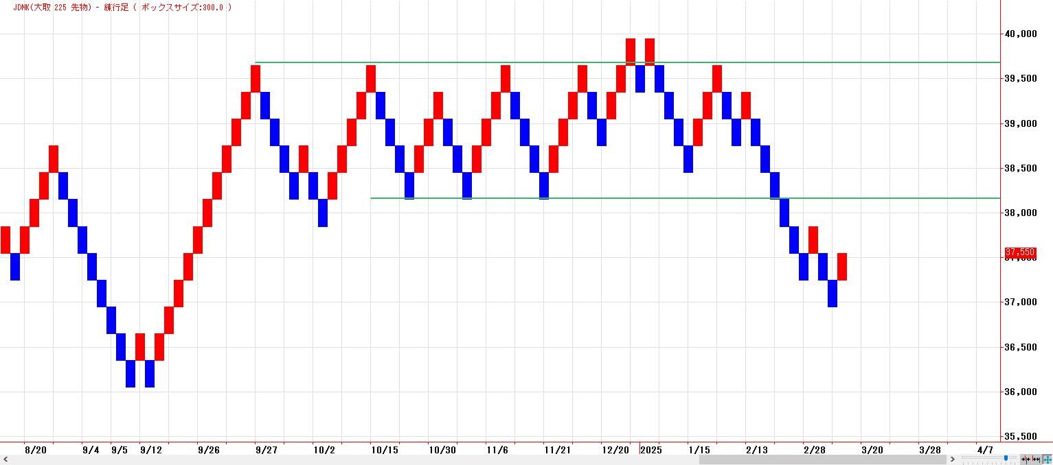 37500円〜40500円のレンジ下限の攻防戦。