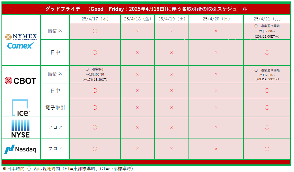グッドフライデーに伴う休場