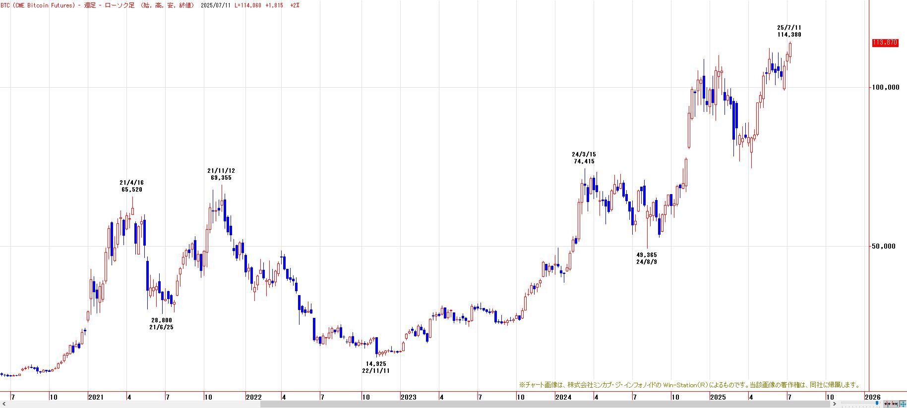 暗号資産(仮想通貨)ビットコインBTC=は11日、一時4%上昇し、11万80000ドルを上抜け、連日最高値を更新した。年初来の上昇率は26%となっている。