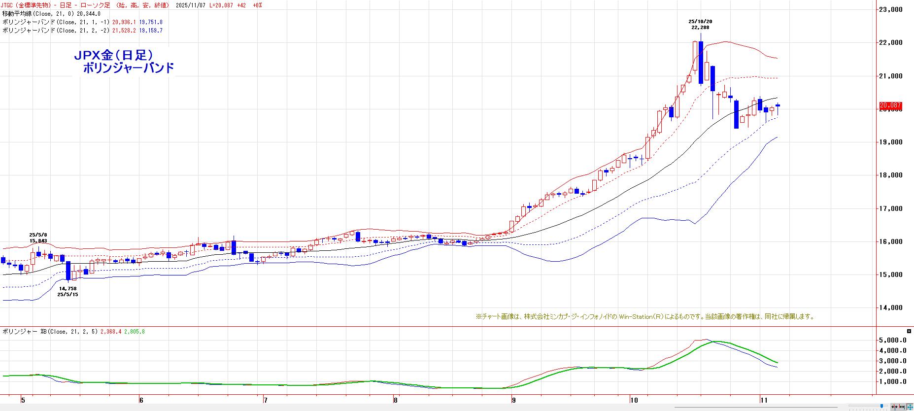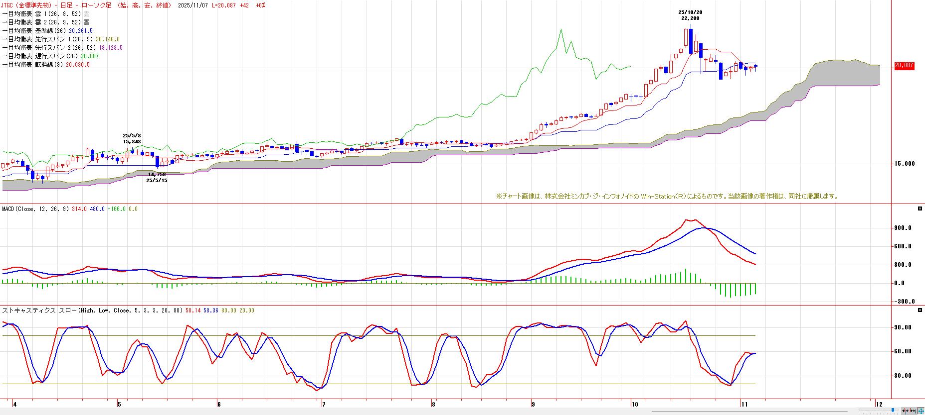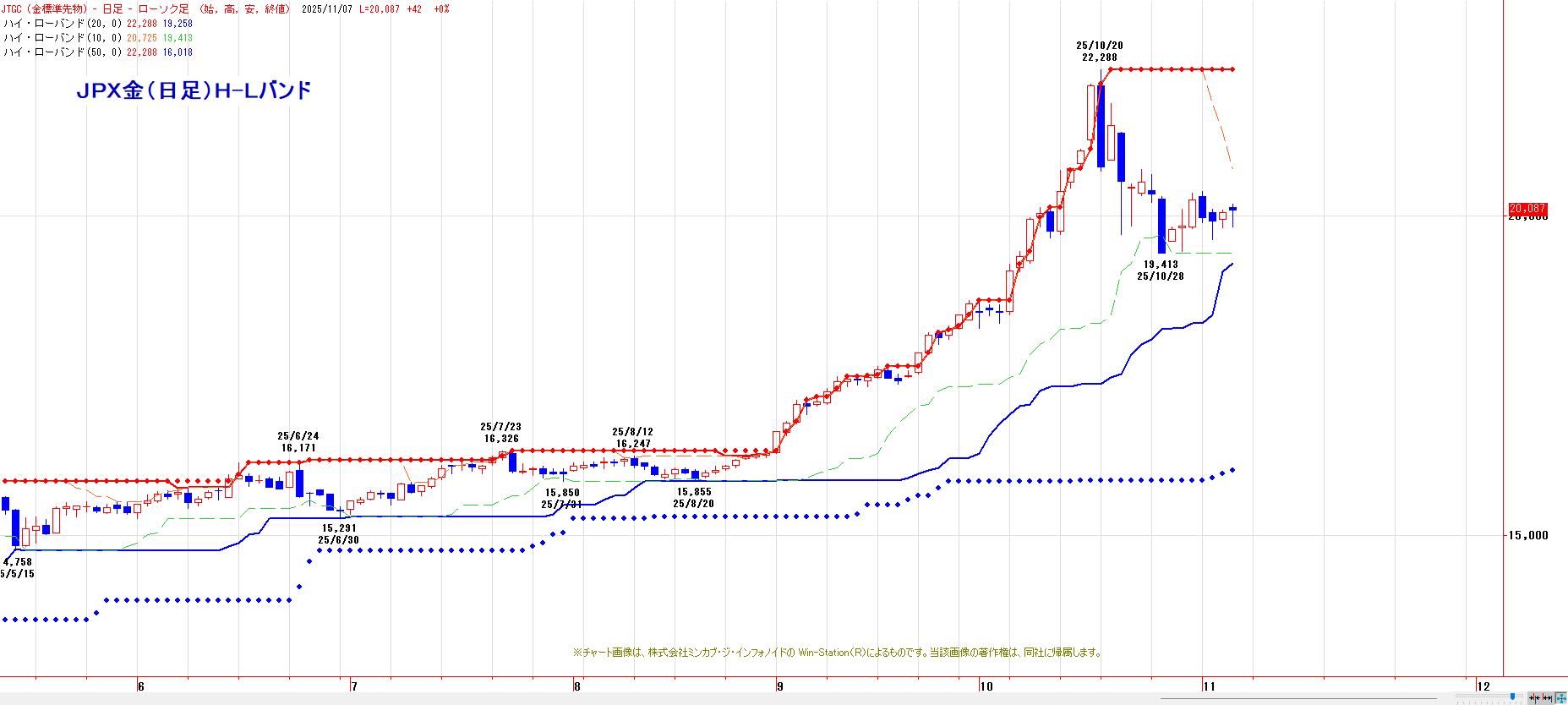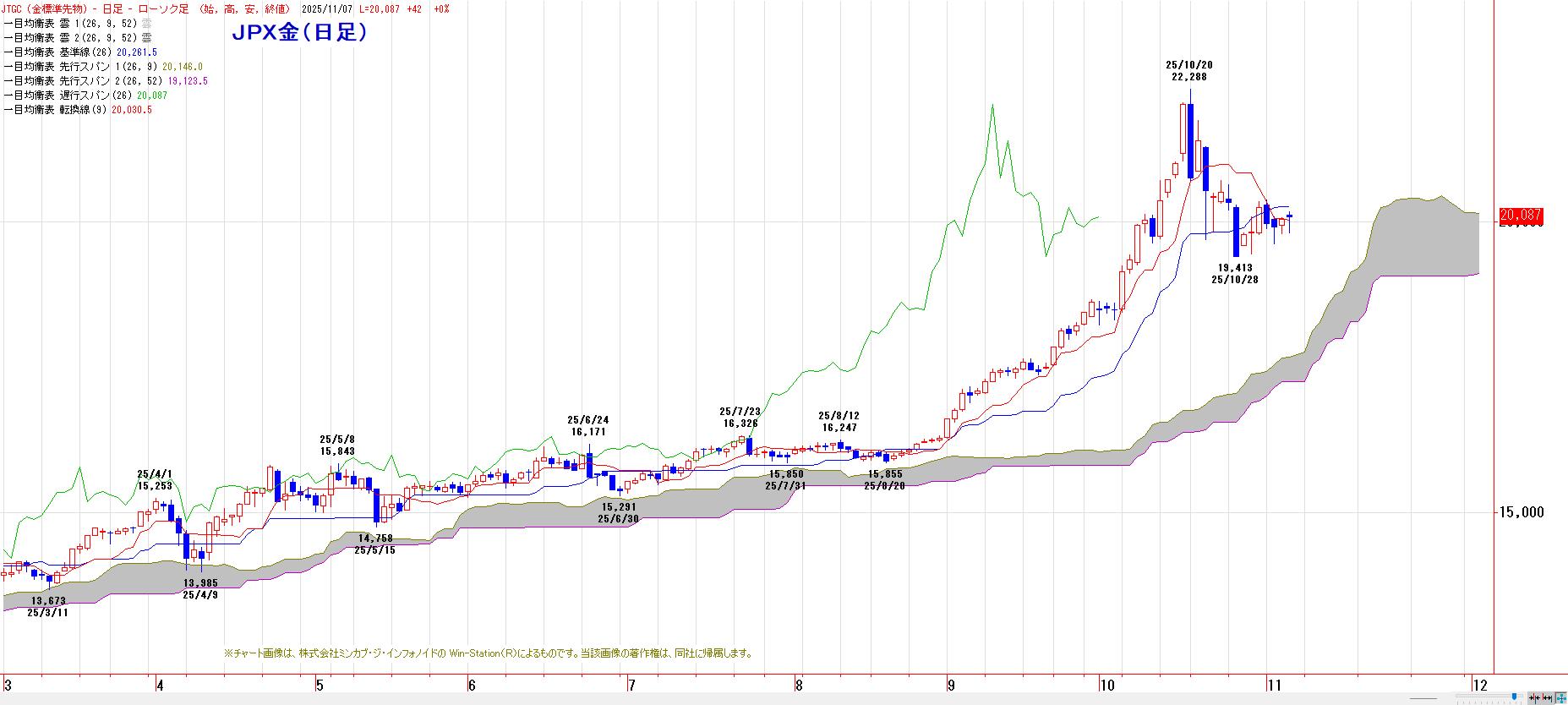 本日のJPX金先限は、小幅続伸。心理的節目20000円を維持。