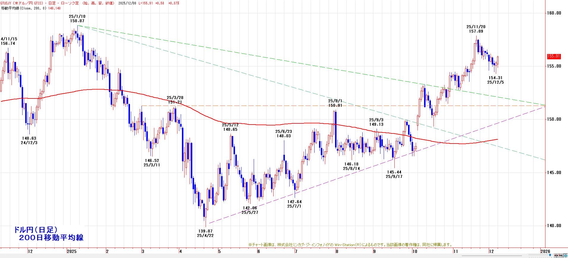 米長期金利の上昇も一因。10年債利回りは前週末比0.03%高い(債券価格は安い)4.16%で取引を終えた。一時は4.19%と、9月下旬以来の高水準を付けた。日米金利差の拡大を意識した円売り・ドル買いを誘った。
