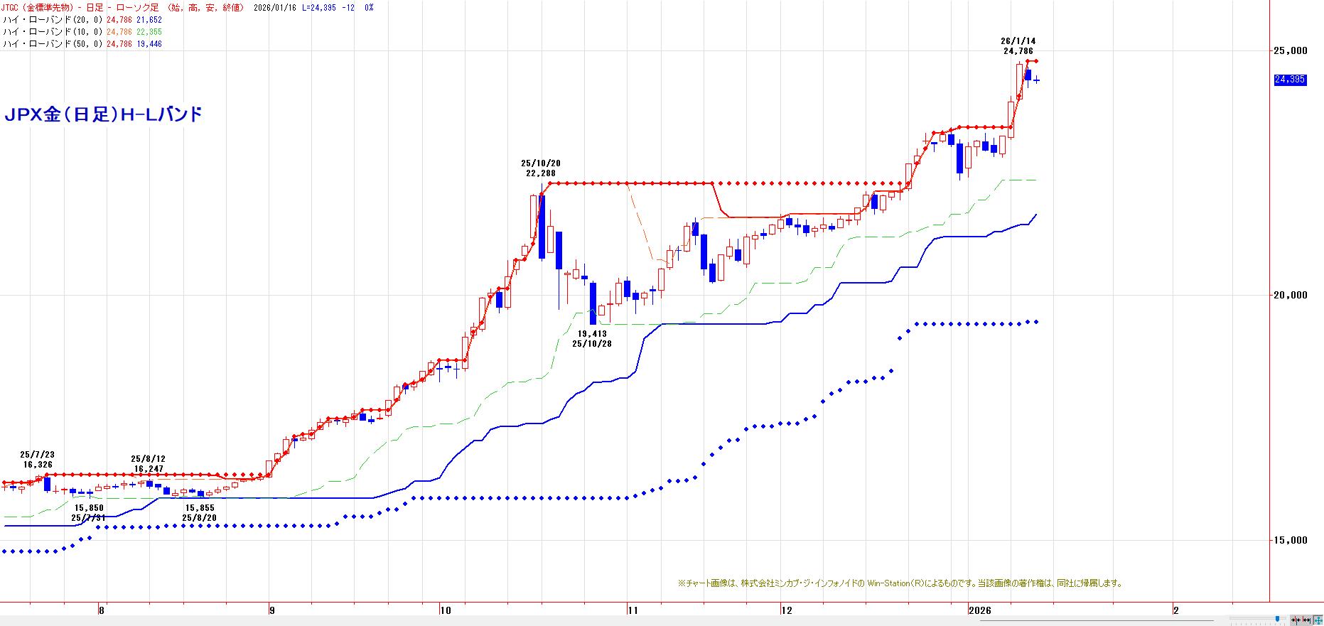 20日間安値(1/16時点:21652円)を割り込まない限り、途転売りとはならない。