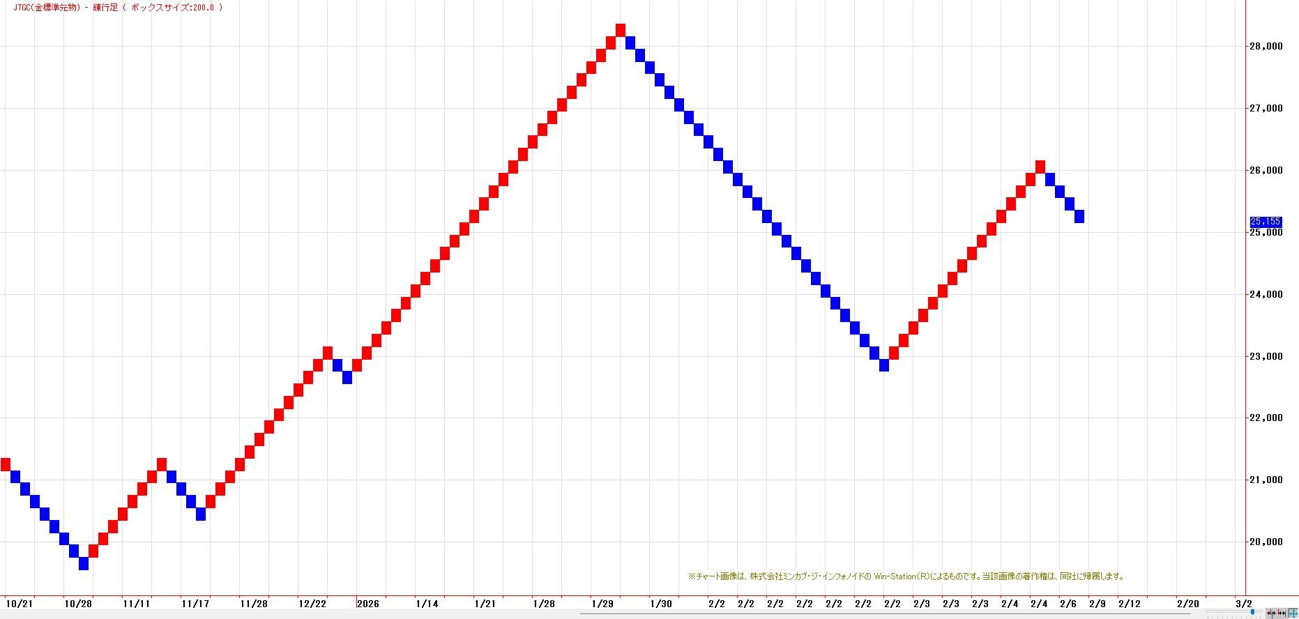 MACでは、2月3日にヒットした売りのトリガー継続。LMA(24922円)〜HMA(26660円)を上値抵抗帯とした戻り売り基調。