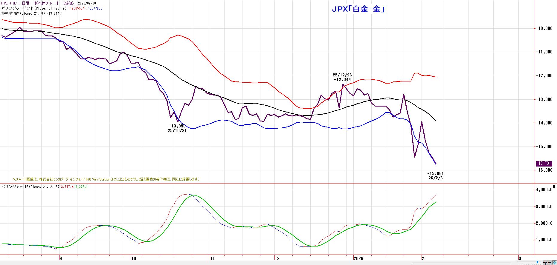 「白金−金」の鞘は、「金買い・白金売り」のバンドウォーク形成中。