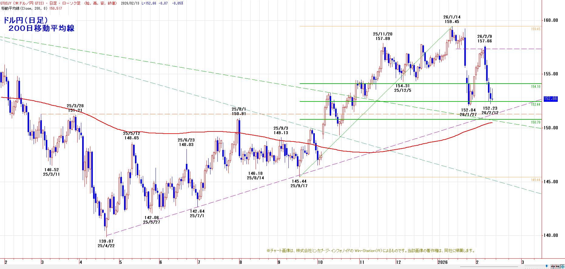 昨晩のドル円は、前日比10銭円高・ドル安の1ドル=152円65〜75銭で終えた。