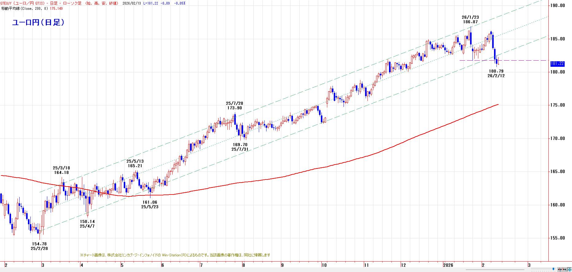 円は対ユーロで4日続伸し、前日比10銭の円高・ユーロ安の1ユーロ=181円20〜30銭で終えた。対ドルで円買いが優勢になり、ユーロに対しても円高が進んだ。